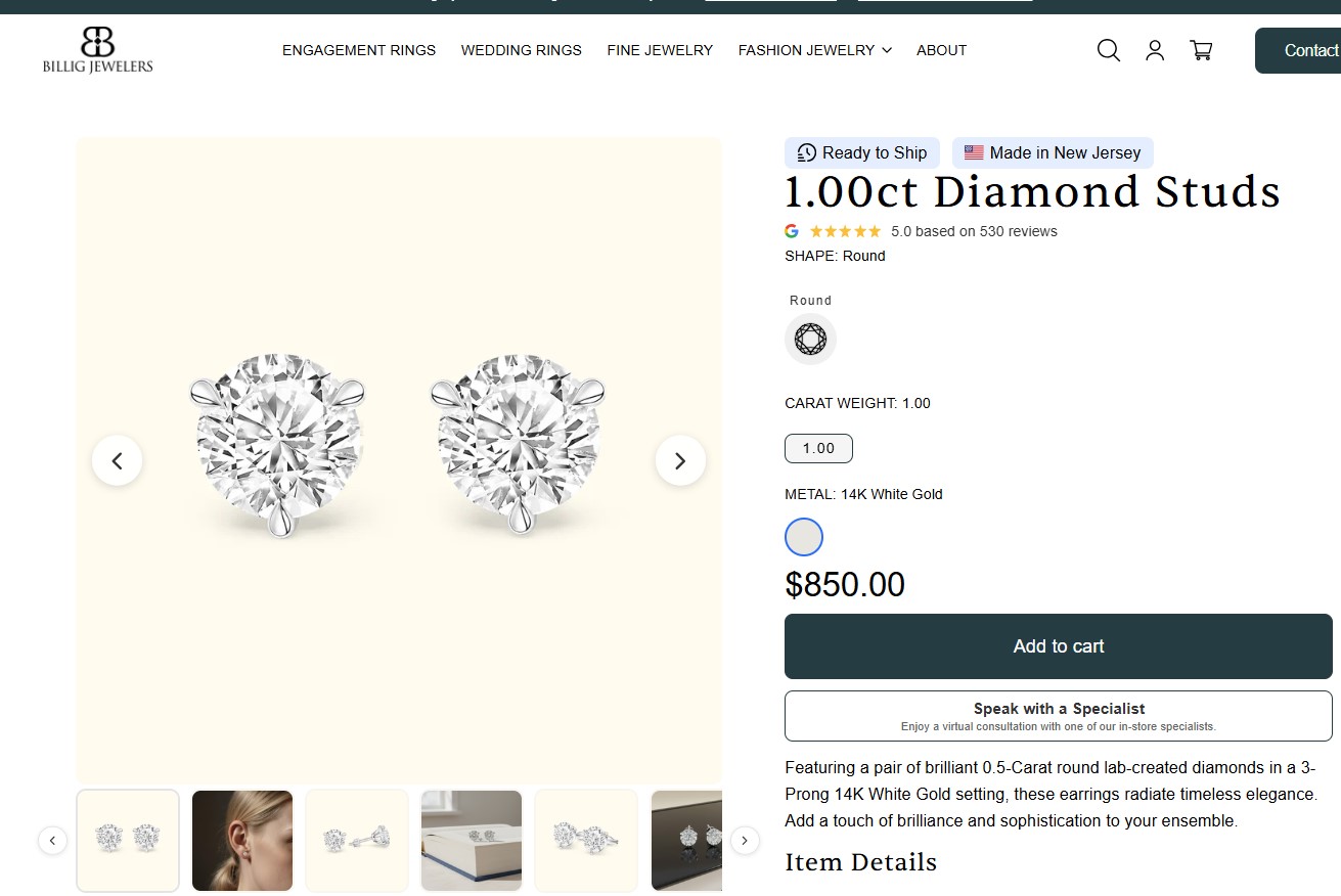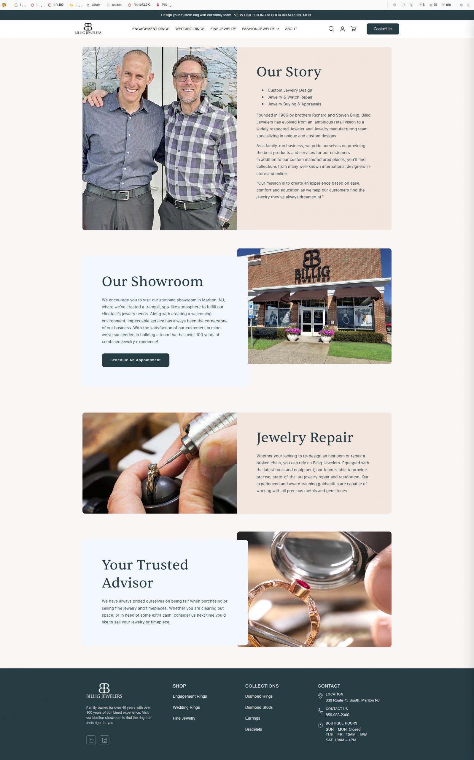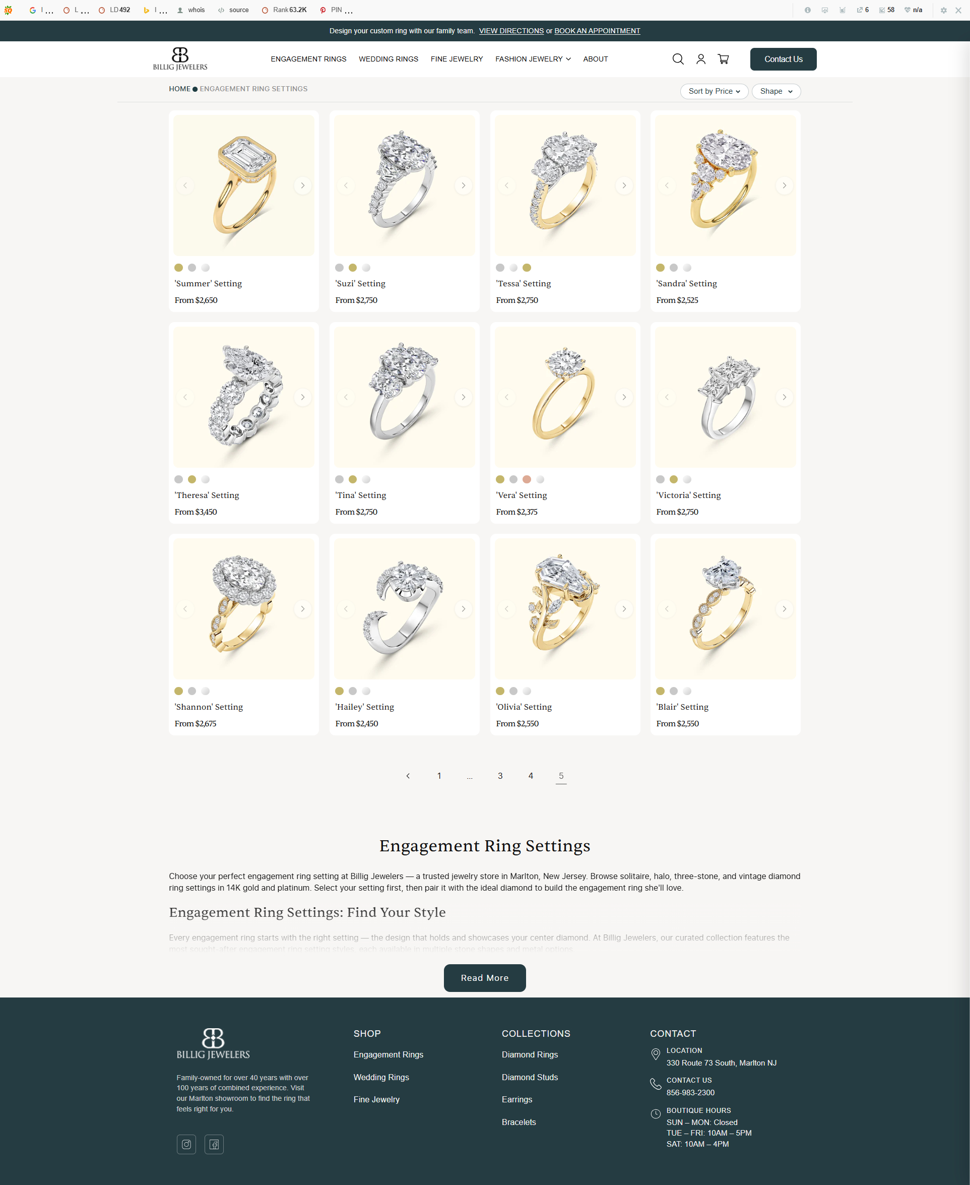 We designed and developed a premium jewelry eCommerce website for Billig Jewelers, focusing on luxury presentation and seamless user experience. The goal was to create a visually elegant platform that showcases fine jewelry collections while building trust and driving online sales.