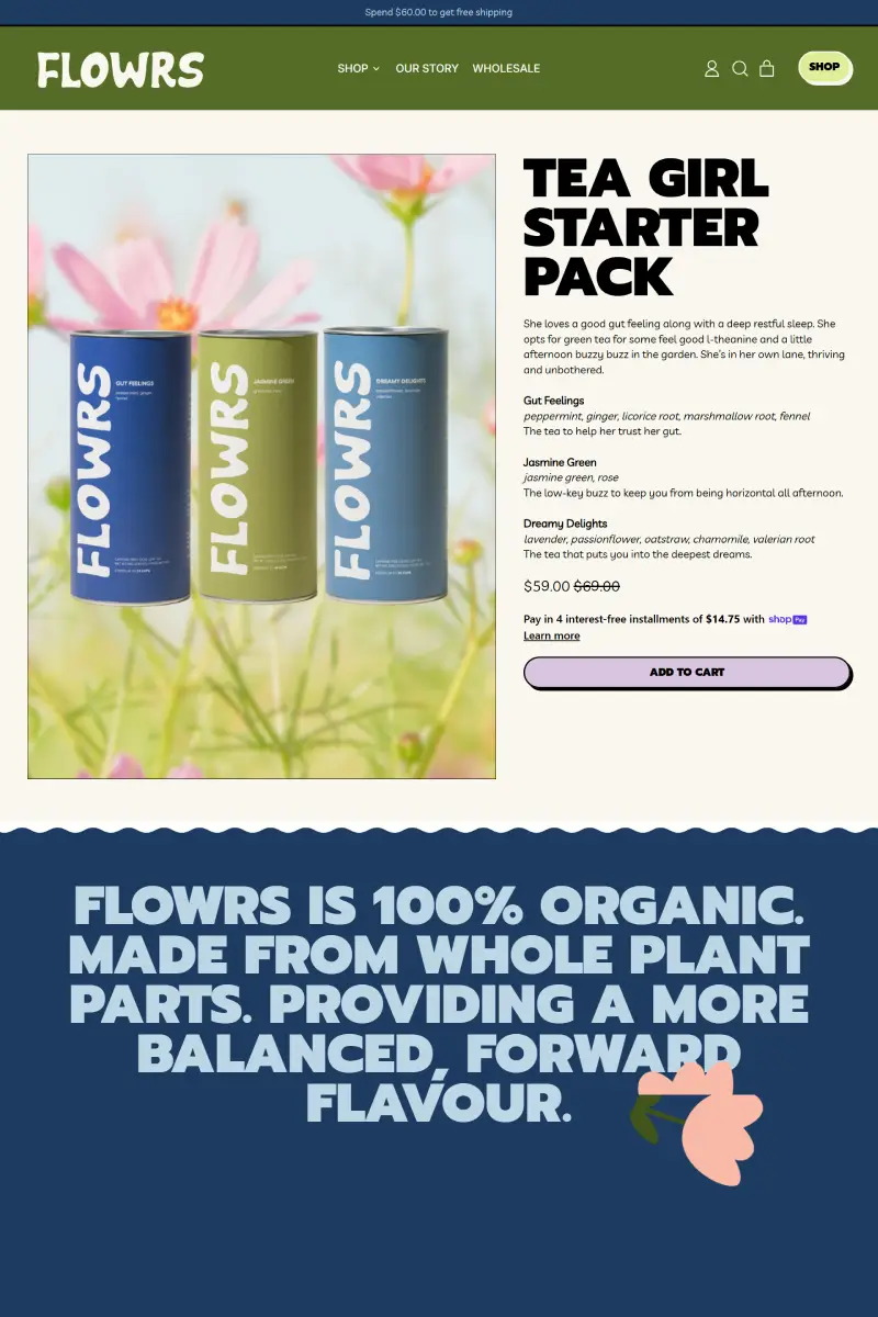 I designed a clean and modern eCommerce website for a wellness-focused tea brand, emphasizing natural ingredients and daily rituals. The experience combines calming visuals with clear, benefit-driven content to guide users smoothly from discovery to purchase while promoting a healthy lifestyle.