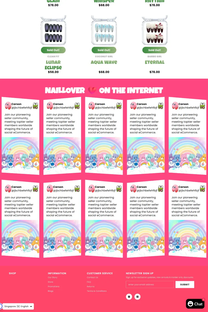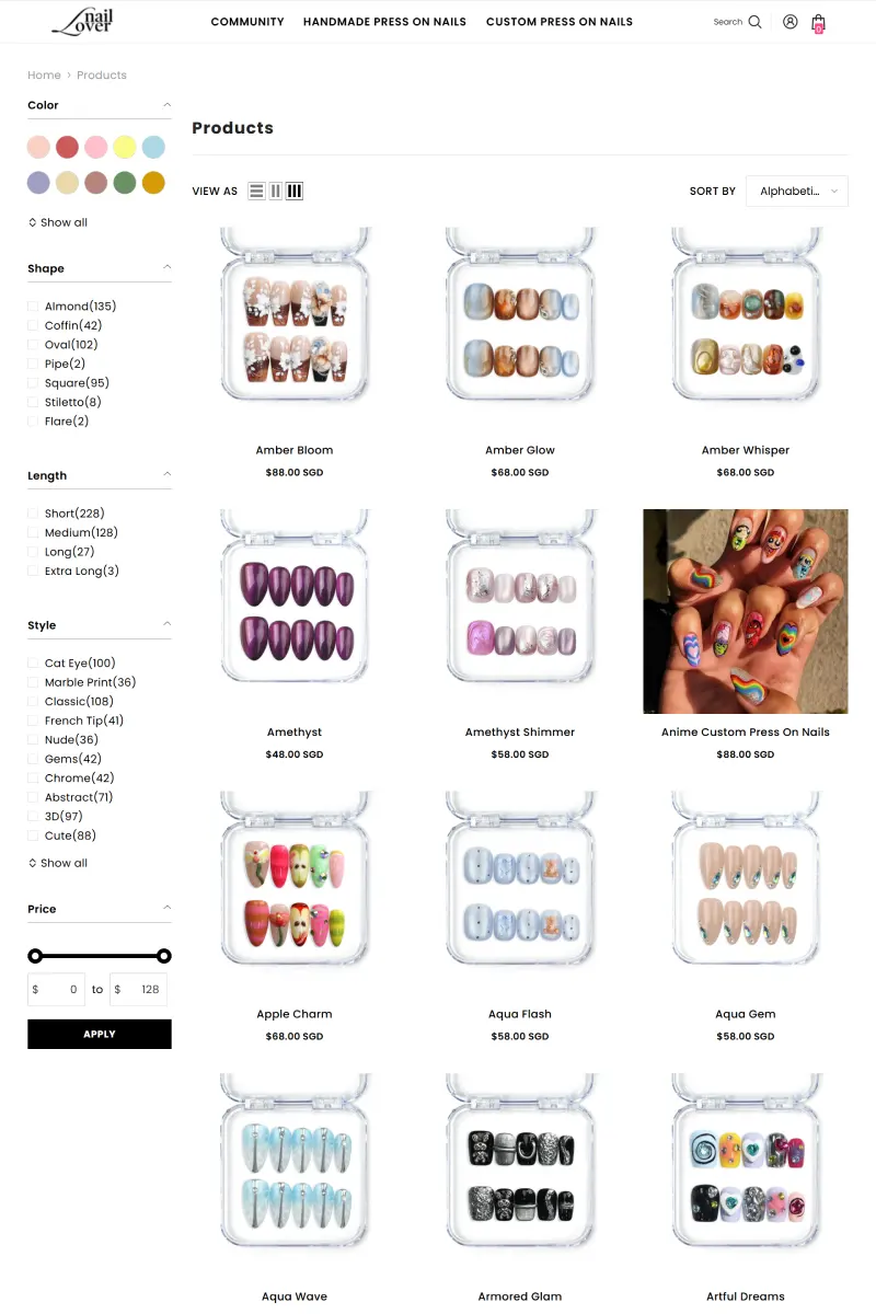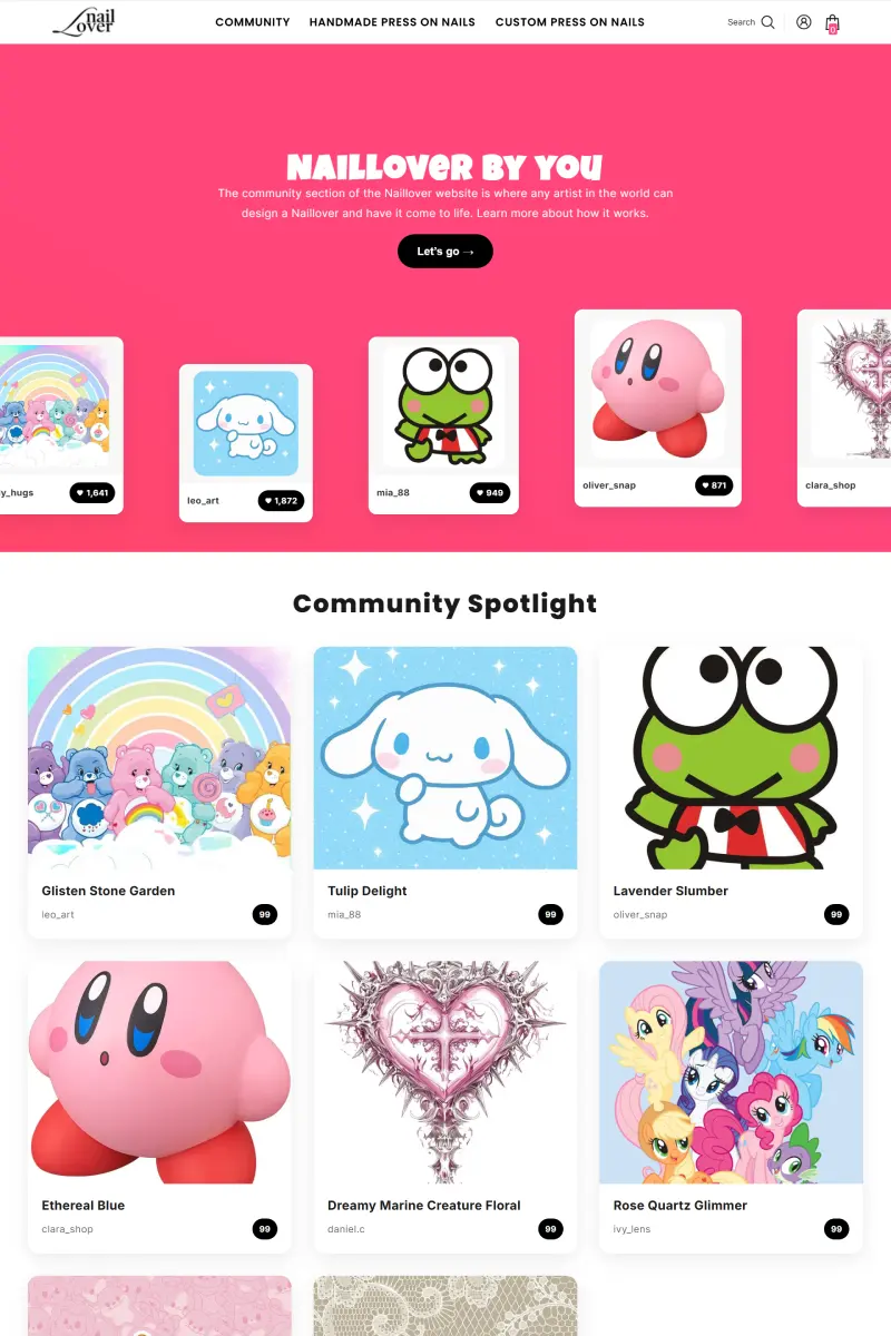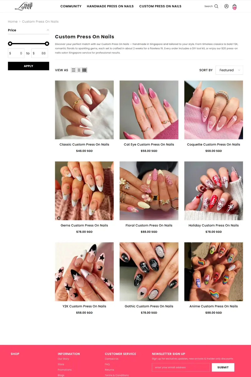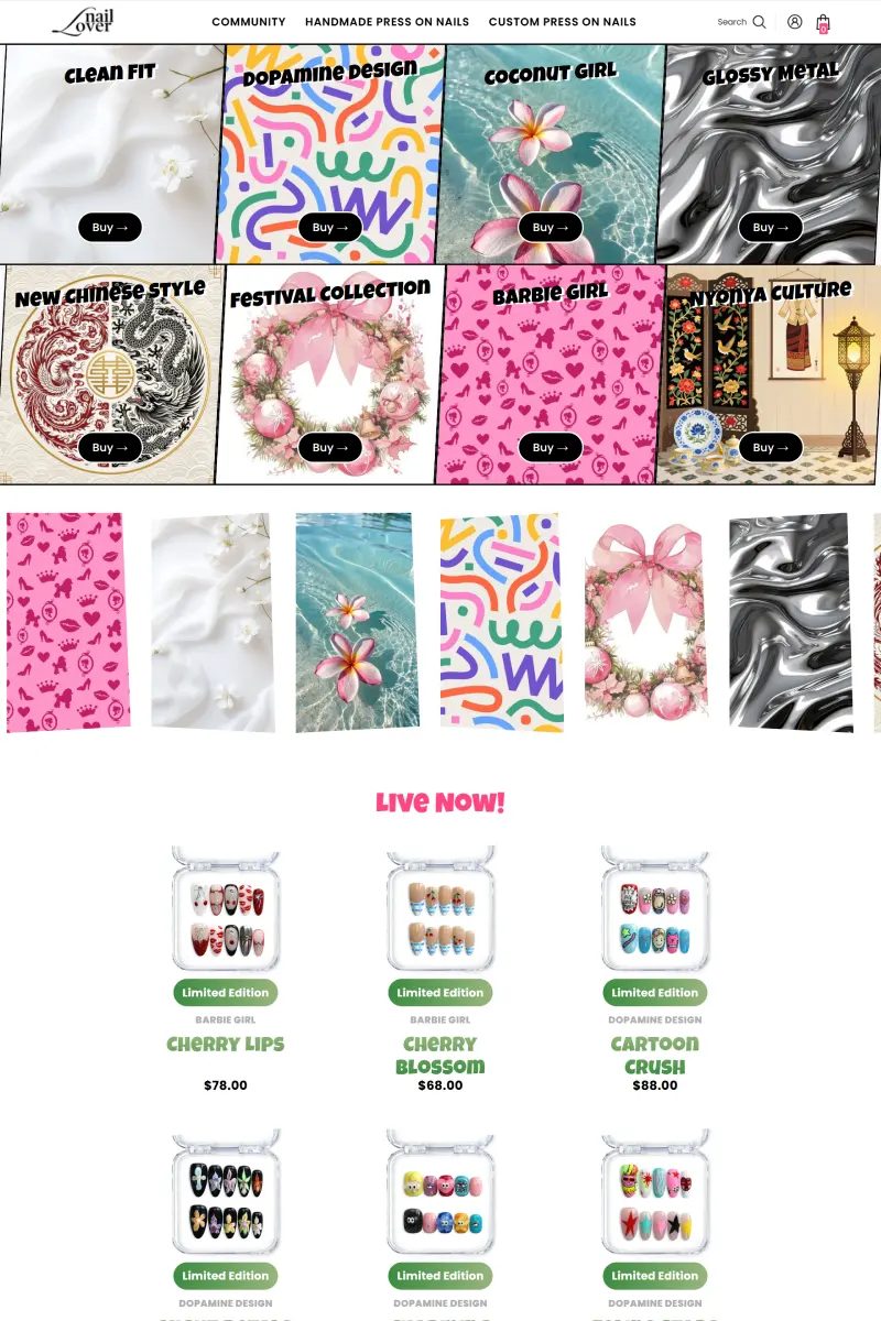This project focused on a beauty eCommerce website offering handmade press-on nails designed for convenience, style, and self-expression. The brand combines trendy designs with salon-quality finishes, making it easy for users to achieve professional-looking nails at home.