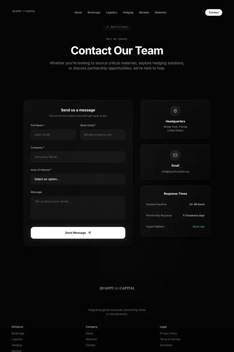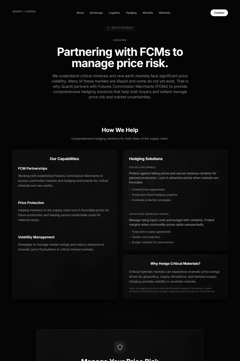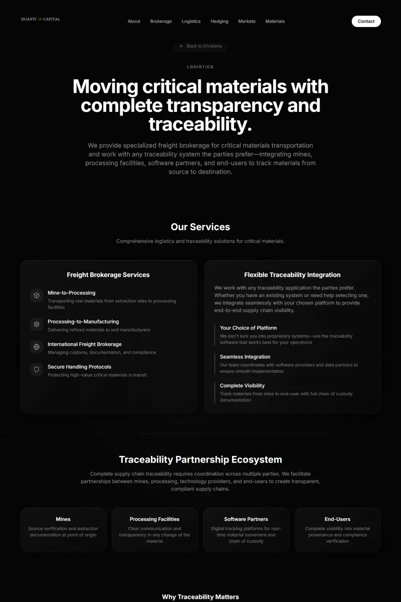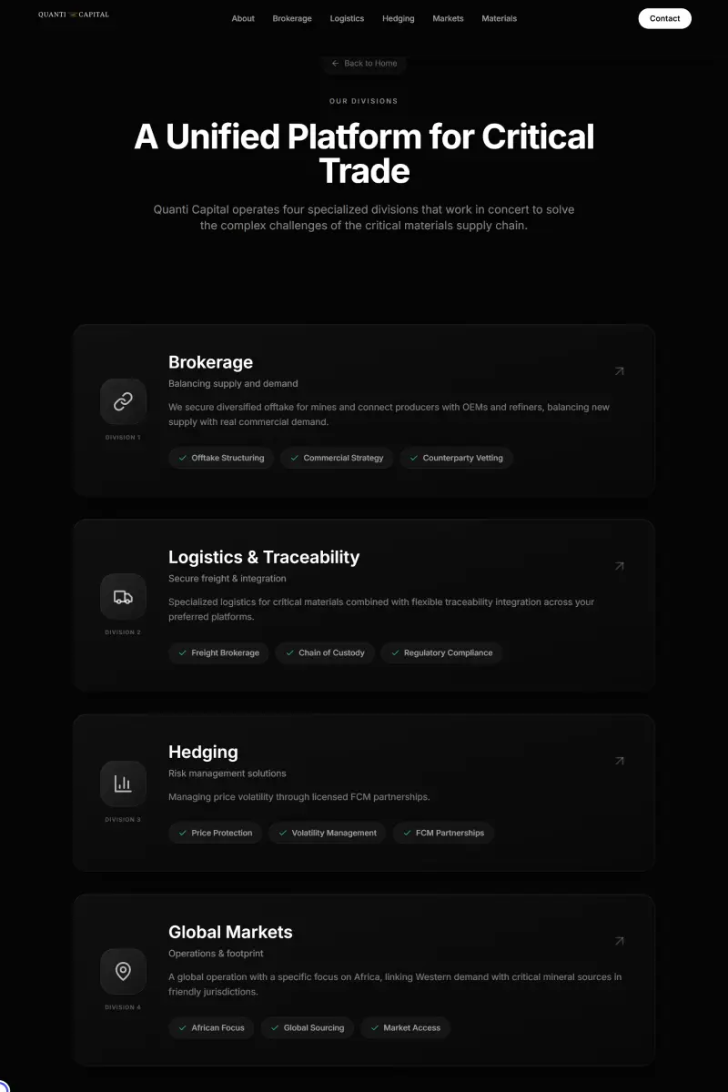 This project focused on a strategic trade and investment website that connects global suppliers and buyers of critical minerals and rare earth materials. The platform emphasizes building resilient supply chains, using data-driven insights and strategic partnerships to support industries like aerospace, defense, and technology.