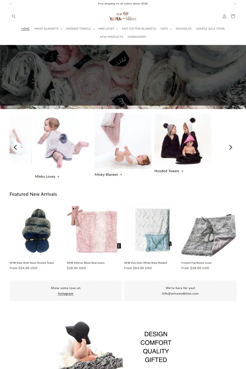This project focused on an eCommerce website for premium baby products, including minky blankets, hooded towels, and accessories designed for comfort and durability. The brand emphasizes high-quality fabrics, soft textures, and long-lasting use, positioning its products as ideal for both everyday use and gifting.