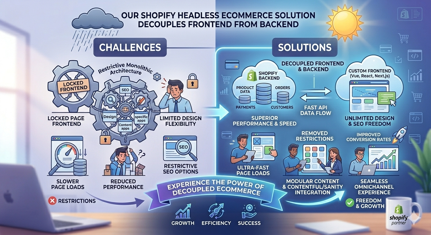 Zilancer solves these challenges by building Shopify Headless E-Commerce solutions that separate the frontend and backend architecture.