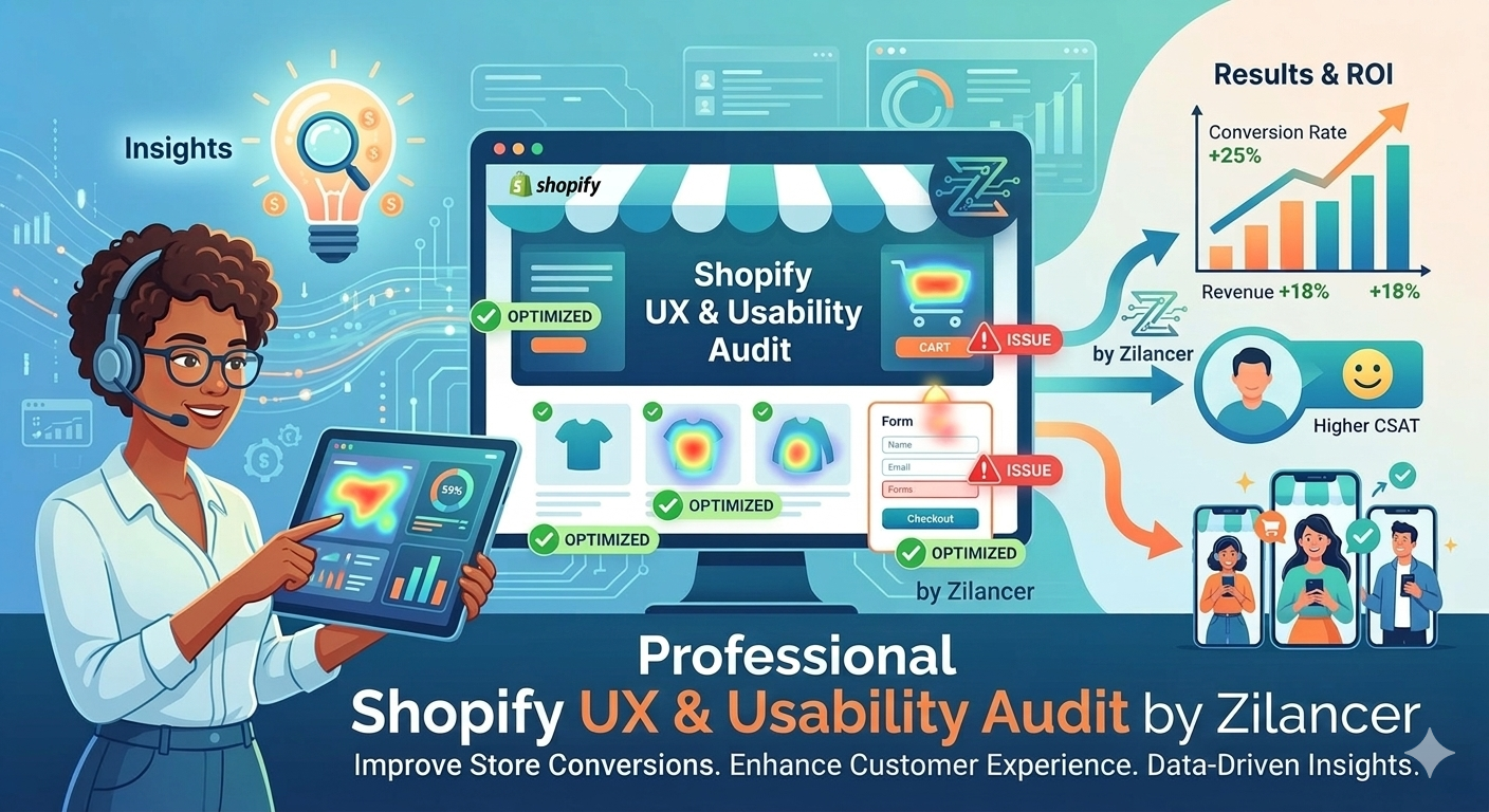 Our Shopify UX & Usability Audit provides a detailed evaluation of your store’s user experience. At Zilancer, we combine UX research, behavioral analysis, and conversion optimization strategies to uncover the friction points in your store.